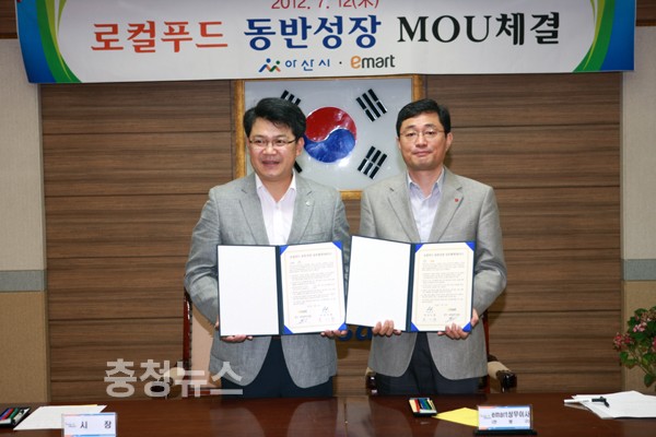 이마트와 시는 MOU를 통해 아산맑은쌀과 아산배, 새송이버섯, 그리고 로컬푸드 신선채소 등을 포함한 우수농특산물과 친환경농산물에 대한 충청권역(천안, 아산지역) 이마트점에 일괄 입점 및 판매하기로 하고, 이미 구매조사에 들어갔다.