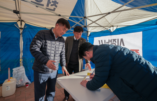 온양대로 3-1호선 확장을 촉구하기 위해 설치된 서명운동 천막/맹의석 의원 제공