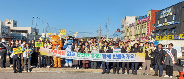 이날 캠페인은 홍성경찰서, 홍성교육지원청, 한국아동학대예방협회 홍성군지부, 충남서부아동보호전문기관, 홍성군청소년상담복지센터, 아동학대대응정보연계협의체 등 유관기관 50여 명이 참여한 가운데 아동학대 예방의 날(11월 19일)을 맞아 아동권리 존중 및 아동학대 예방을 홍보하기 위해 진행됐다.