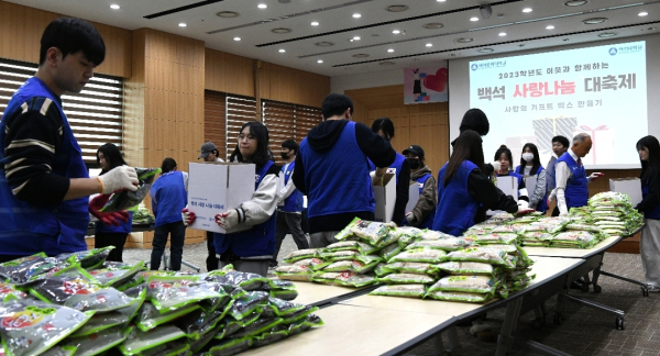 지난 2003년 ‘사랑의 김장나눔 대축제’라는 이름으로 시작한 행사는 코로나19 이후 김장이 아닌 생활필수품을 담은 상자로 기부 품목을 바꿔 소외계층에게 전하고 있다.