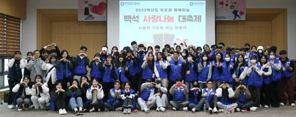 [충청뉴스 박동혁 기자] 백석대학교와 백석문화대학교 사회봉사센터는 23일 교내 백석생활관에서 ‘2023 백석 사랑나눔 대축제’를 진행했다고 밝혔다.