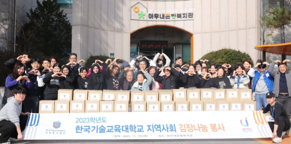 [충청뉴스 박동혁 기자] 한국기술교육대학교는 23일 천안시 병천면에 있는 어르신 복지시설 아우내은빛복지관과 함께 ‘사랑의 김장 나눔’ 행사를 진행했다고 밝혔다.