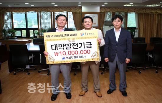 영남강철 주식회사 최성대 대표는 19일 11시30분 한밭대학교 총장실을 방문해 대학발전기금 1천만원을 쾌척했다.