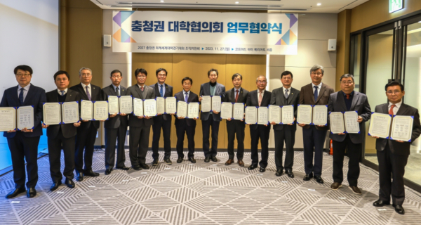 ‘충청권 대학협의회’는 2027 충청권 하계세계대학 경기대회의 성공적 개최를 위한 대학 협력 네트워크 구축을 목적으로 대한대학스포츠위원회(KUSB), 한국대학스포츠협의회(KUSF)와 권역별 총장협의회장 대학, 경기 개최 대학 및 충청권 주요 대학을 포함하여 구성되었으며, 이날 첫 회의를 열어 협약을 진행하였다.