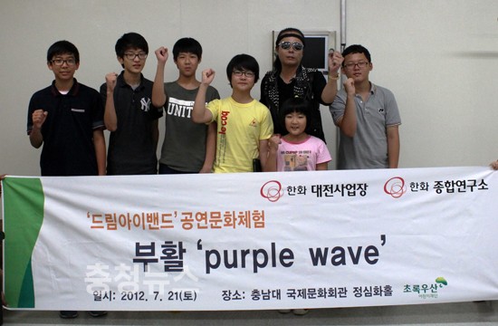 초록우산 어린이재단 대전지역본부(본부장 최명옥)는 7월 21일(토) 충남대학교 국제문화회관 정심화홀에서 한화 대전사업장, 한화종합연구소의 후원으로 드림아이밴드 멤버 6명 및 관계직원 6명 총 12명이 함께 한 가운데 부활 전국라이브투어 ‘Purple Wave' 공연을 관람하였다.