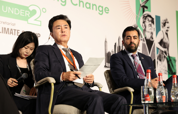 이날 총회는 김 지사와 훔자 유샤프 스코틀랜드 행정수반, 노무사 누베 은쿠베 콰줄루나탈주 총리 등 언더2연합 대륙별 공동의장, 헬렌 클락슨 언더2연합 CEO, 로렌스 투비아나 유럽기후재단 CEO 등 300여 명이 참석한 가운데, 각 공동의장이 서로에게 질의하고 응답하는 방식으로 진행됐다.