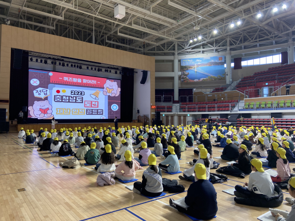 [충청뉴스 권상재 기자] ‘2023년 충남 도전! 재난안전 골든벨’ 왕중왕전이 13일 예산읍 윤봉길체육관에서 도내 15개 시군 어린이 286명이 참여한 가운데 열렸다.