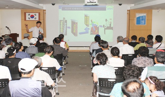 이날 안전교육은 한국산업안전보건공단 서비스재해예방팀 최흥구 팀장을 강사로 초빙해 일자리사업 추진 중 발생할 수 있는 각종 안전사고 예방요령과 하절기 폭염 대비 건강관리법에 대한 내용으로 참여자의 건강과 안전의식의 중요성에 대해 교육했다.