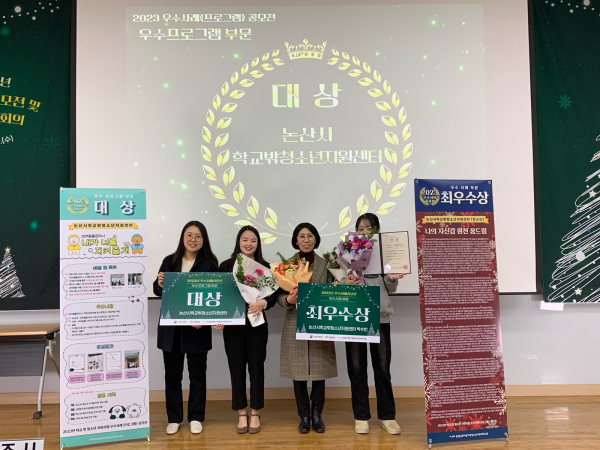 [충청뉴스 논산 = 조홍기 기자] 논산시청소년행복재단(이사장 백성현) 산하의 논산시학교밖청소년지원센터(이하 센터)가 충청남도여성가족청소년사회서비스원에서 주최하는 ‘2023년 충청남도 학교밖청소년지원센터 우수사례(프로그램) 공모전’에서 2관왕을 차지했다.