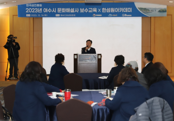 ‘여수시 문화관광해설사 위탁 보수교육 운영’과 연계한 이번 아카데미는 육수현 한국섬진흥원 사업평가팀장의 ‘지속가능한 섬 관광 정책 방향’이라는 강의 주제로 문을 열었다.