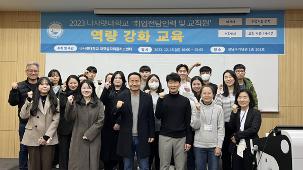 [충청뉴스 박동혁 기자] 나사렛대학교는 대학일자리플러스센터가 교직원 40여 명을 대상으로 ‘취업역량 강화교육’을 실시했다고 18일 밝혔다.