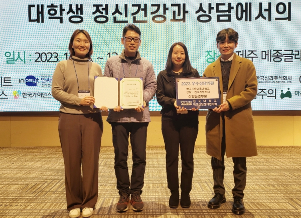 [충청뉴스 박동혁 기자] 한국기술교육대학교는 상담·진로개발센터가 지난 18일 메종글래드 제주에서 열린 전국대학교학생상담센터협의회(이하 전상협) 시상식에서 우수상담 기관(상담 운영 부문)에 선정됐다고 밝혔다.