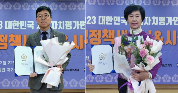 [충청뉴스 박동혁 기자] 천안시의회 이종담 부의장과 엄소영 의원이 ‘2023 대한민국 지방자치평가연계 의정정책대상’ 시상식에서 기초의회 부문 대상을 받았다.
