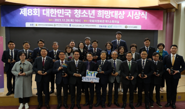 올해 8회째를 맞이하는 (사)한국청소년재단 주최 청소년희망대상은 청소년의 목소리가 반영된 청소년 관련 입법과 청소년을 위한 정책의제 발굴 확산을 위해 개최하는 시상식으로 전국 기초·광역의회, 지자체장, 국회의원 가운데 수상자 27명과 2개 기관을 선정했다.