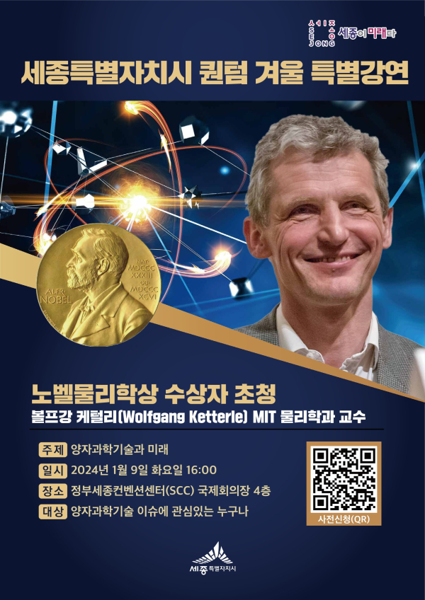세종특별자치시(시장 최민호)는 오는 9일 오후 4시부터 정부세종컨벤션센터 4층 국제회의장에서 볼프강 케털리 교수를 초청, 특별강연을 개최한다.