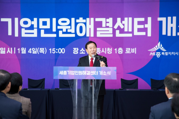 시는 4일 시청 1층에서 최민호 세종시장, 이순열 세종시의회 의장, 성녹영 대전세종지방중소벤처기업청장, 이두식 세종상공회의소회장을 비롯한 기업·기관 관계자 등 50여 명이 참석한 가운데 ‘세종기업민원해결센터’ 개소식을 가졌다.