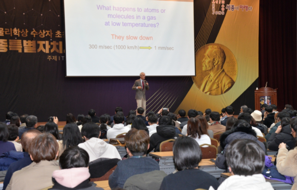 이날 특강은 ‘01년 노벨물리학상(극저온 기체 상태 물질에 관한 연구) 수상자 볼프강 케털리(Wolfgang Ketterle) 교수가 ’양자과학기술과 미래‘에 대해 강연했다.