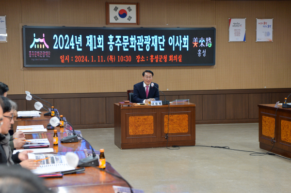 [충청뉴스 권상재 기자] (재)홍주문화관광재단(이사장 이용록)이 11일 군청 회의실에서 2024년 제1회 이사회를 개최했다.