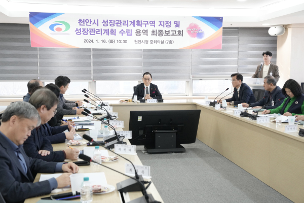 시는 이날 시청 중회의실에서 박상돈 천안시장을 비롯해 성장관리계획 관련 부서장·전문가·용역사가 참석한 가운데 ‘천안시 성장관리계획구역 지정 및 계획 수립용역 최종보고회’를 열었다.
