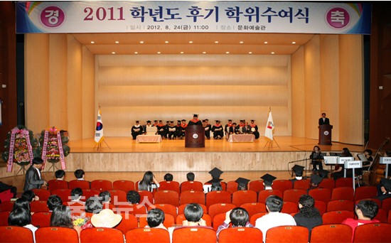 이번 학위수여식에서는 석사17명, 학사266명으로 총 283명에게 영예로운 학위를 수여하고, 전기공학과 김태웅 외 4명에게 학업우수상을, 영어과 임진아 외 1명에게는 공로상을 각각 수여했다.