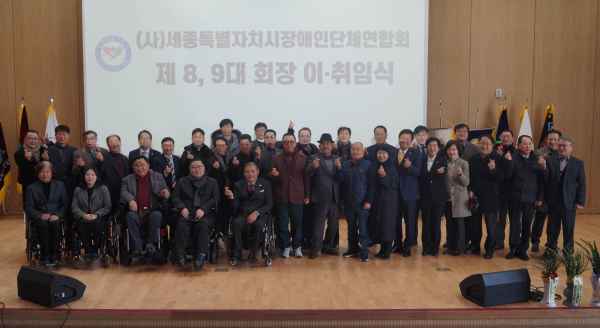 세종시는 이날 조치원복합커뮤니티센터 4층 대강당에서 세종시장애인단체연합회장 이취임식을 개최했다.