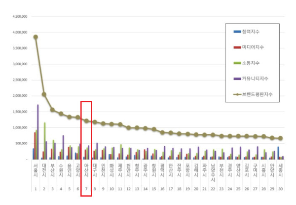 [충청뉴스 박동혁 기자] 충남 아산시는 ‘대한민국 도시브랜드 평판’ 빅데이터 분석에서 전국 7위를 차지했다고 24일 밝혔다.