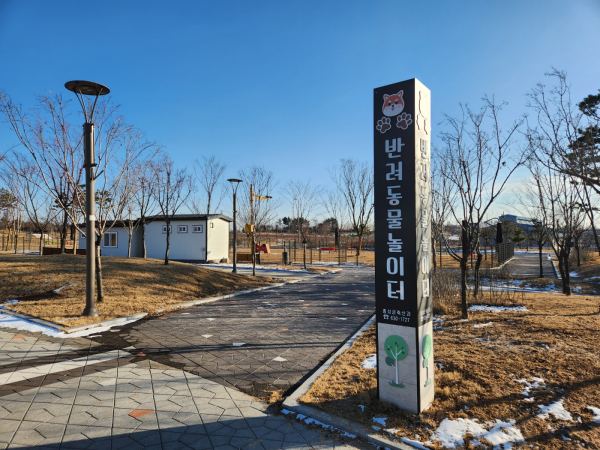 반려동물 놀이터는 약 429.5평(1,420㎡) 규모로 운동장, 울타리, 놀이기구 등 반려동물과 반려인을 위한 시설로 구성됐고, 안내소 및 화장실의 운영 시간은 평일 오전 9시~오후 6시다. 놀이터는 연중무휴 무료로 상시 개방되지만 안전사고 방지를 위해 폭우·폭설 등 기상 상황에 따라서 휴장할 수 있다.