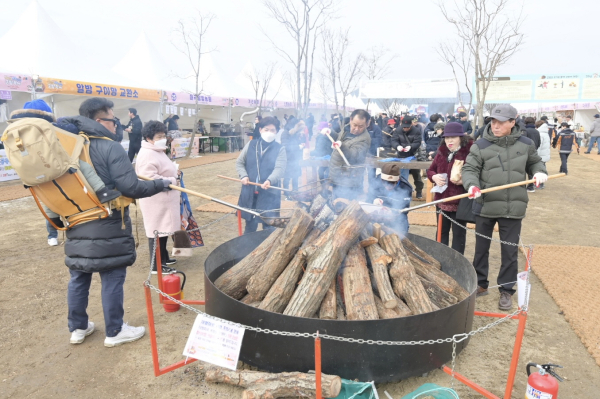 주무대 앞은 평일임에도 불구하고 구수한 군밤의 향연을 즐기려는 관람객들로 북새통을 이뤘다.