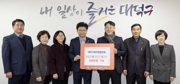 [충청뉴스 박영환 기자] 대전 대덕구(구청장 최충규)는 대덕구복지관협의회(회장 서용원)로부터 오정동 가스폭발 사고 피해자를 돕기 위한 성금 400만 원을 기탁받았다고 밝혔다.
