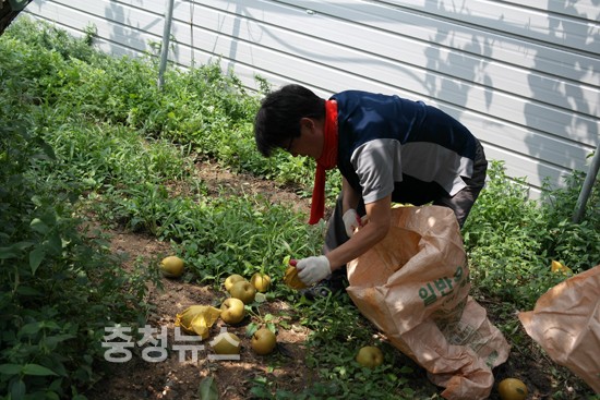 박완주 의원은 주말 내내 피해농가의 낙과 수거작업을 직접 도우며 추석 전 수확을 앞두고 일년농사에 막대한 피해를 입은 과수농가의 시름을 청취하고 위로했다.