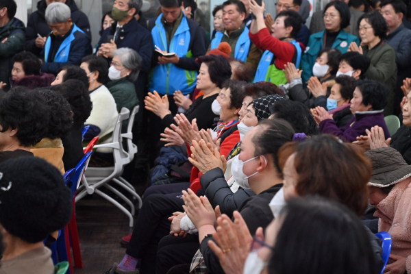 이어 “임시시장에서는 임대료를 내지 않고 장사할 수 있도록 하겠다”라고 하자 박수가 터져나왔다.