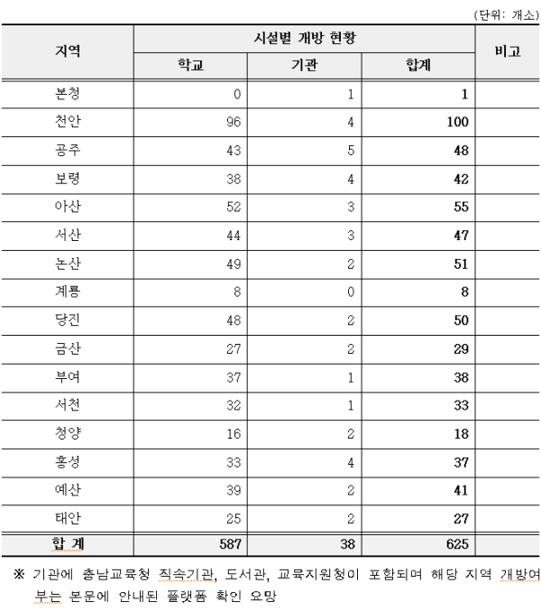 [충청뉴스 권상재 기자] 충남교육청은 이번 설 연휴 기간, 충남을 방문하는 귀성객들의 편의를 제공하기 위해 도교육청을 포함한 산하 교육기관, 학교 주차장 620여 개소를 무료로 개방한다고 밝혔다.