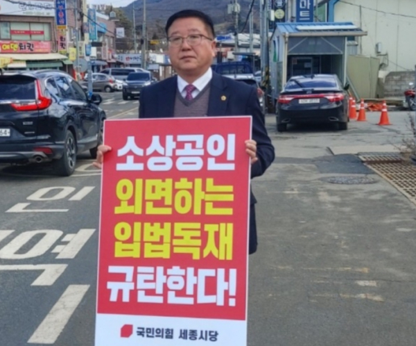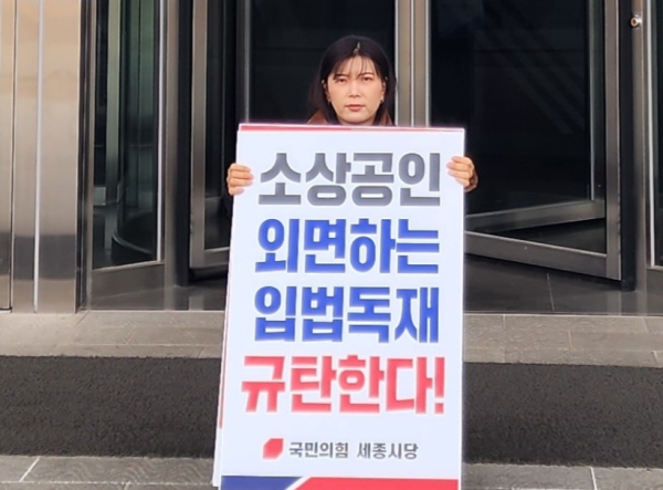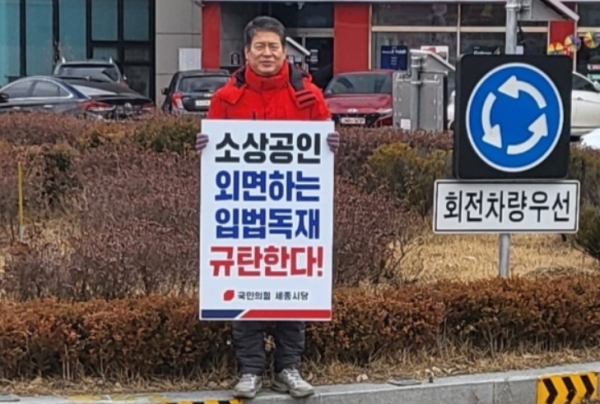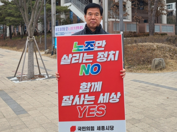 [충청뉴스 최형순 기자] 국민의힘 세종시당은 3일부터 세종시 관내 주요 지역에서 ‘중대재해처벌법 유예’ 무산에 따른 1인 피켓시위에 나섰다.