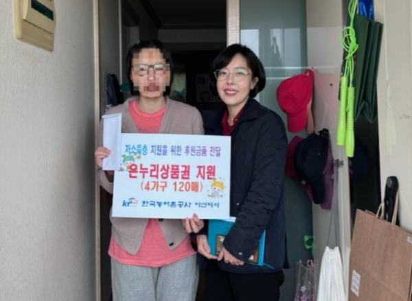 아산지사는 아산시 사회복지과를 통해 한부모 가족, 기초생활보장 수급자 등 4가구를 추천받아, 가구당 온누리상품권 30만 원을 전달했다.