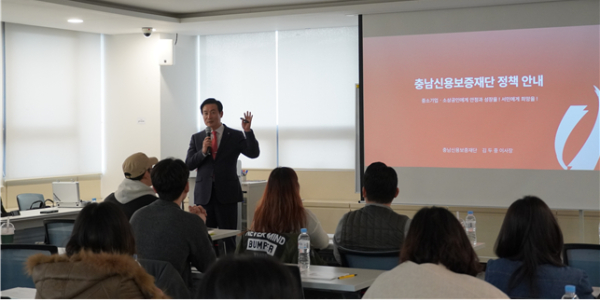 충남신보는 도내 중소기업·소상공인의 경쟁력 강화 및 생존율 향상을 위해 예비창업자를 위한 창업아카데미, 실무 중심의 역량강화 교육 등 중소기업·소상공인 교육 이외에도 분야별 전문가가 찾아가는 1:1 맞춤형 컨설팅, 성공한 사업자가 멘토가 되어 사업운영에 실질적 도움을 주는 멘토링 등 다양한 경영지도 지원 사업을 진행하고 있다.