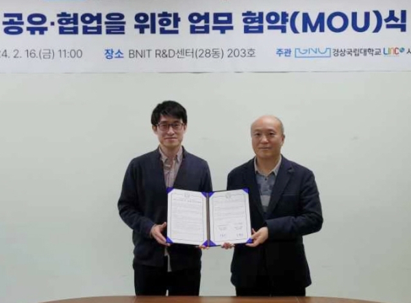 경상국립대에서 열린 협약식에는 한기대 LINC 3.0 사업단 조완기 친환경‧자율차ICC센터장, 박종선 산학협력 중점교수와 경상국립대 김형범 LINC 3.0 사업단장, 박동규 산학협력 중점교수 등 관계자들이 참석했다.