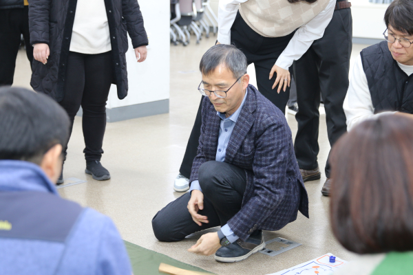 정월 대보름 화합 한마당 행사에서 직원들이 윷놀이를 즐기고 있다