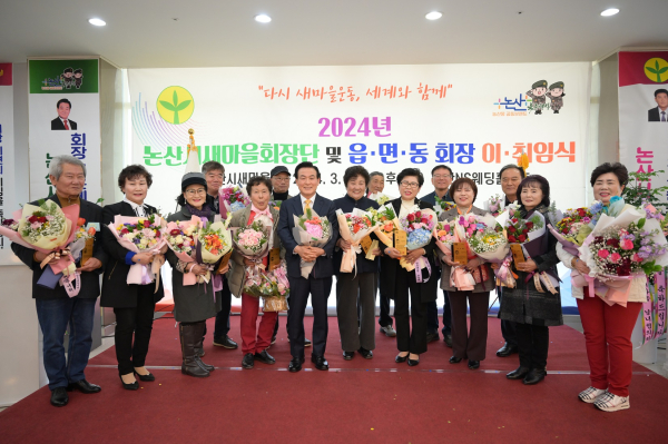 2024년 새롭게 구성된 논산시 새마을회장단에는 안관순 새마을지도자논산시협의회장, 윤화중 논산시새마을부녀회장, 박세희 새마을문고논산시지부회장이 선출되었으며, 15개 읍면동 남녀 회장 30명이 각 단체 총회를 통해 선출되어 앞으로 3년간 지역사회를 위해 봉사활동을 하게 된다.