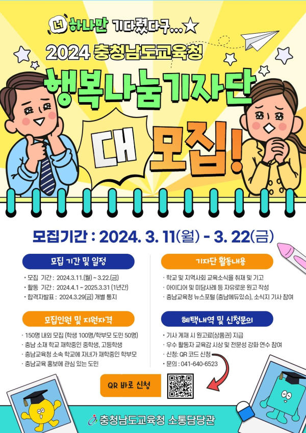 충청남도교육청, 2024 행복나눔기자단 모집