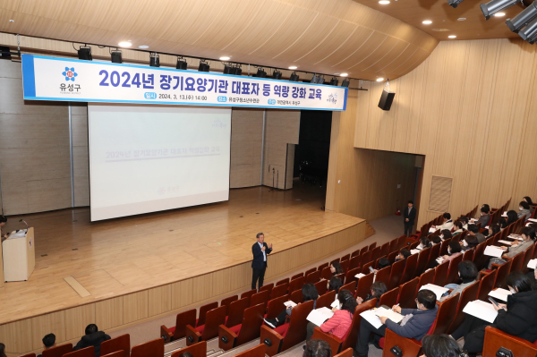 [충청뉴스 박영환 기자] 대전 유성구(구청장 정용래)는 13일 유성구청소년수련관 누리홀에서 관내 장기요양기관 대표자 등 130여명을 대상으로 역량 강화 교육을 실시했다.