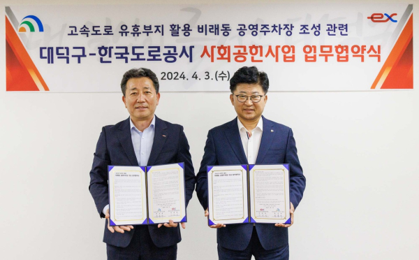 이번 협약에 따라 한국도로공사 대전충남본부는 고속도로 유휴부지를 무상으로 제공하고, 대덕구는 해당 부지를 활용해 410-3번지 외 6필지 일원에 각 34면, 15면의 공영주차장을 조성할 수 있게 됐다.