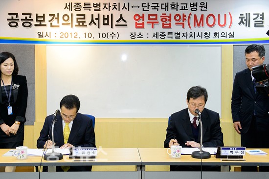 세종특별자치시(시장 유한식)와 단국대병원(병원장 박우성)이 공공보건의료서비스 업무협약을 체결했다.