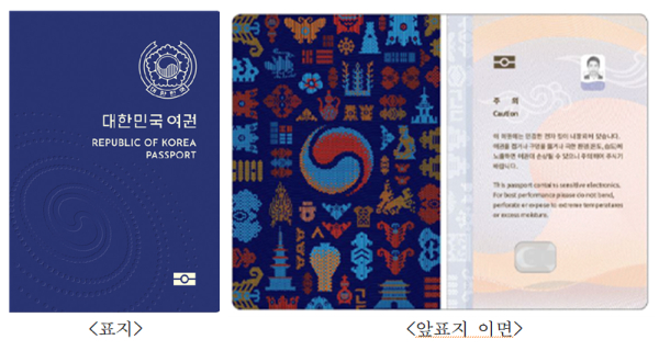 조폐공사는 국민들이 안심하고 사용할 수 있는 여권을 제조・발급하는 국내 유일의 제조기관으로, ΄21년 12월부터 차세대 전자여권(남색표지이며, 종전여권은 녹색표지이다.)을 발급하고 있다. 한국의 상징적 이미지와 문양들이 다양하게 어우러지고, 선사시대부터 조선시대까지의 시대별 유물을 배경으로 디자인했다.