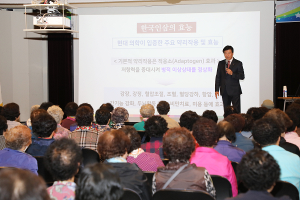 [충청뉴스 금산 = 조홍기 기자] 박범인 금산군수는 지난 11일 금산다락원 소공연장에서 금산행복대학 본교생을 대상으로 세계인삼수도 금산의 재미있는 인삼이야기 특강에 나섰다.