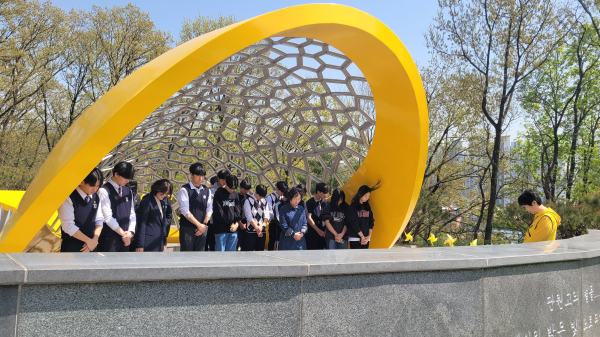 이후, 단원고등학교에 설치된 추념비, 추모조형물 등을 둘러보며 자신과 비슷한 또래의 희생 학생들을 조용히 추모하는 시간을 가졌다.