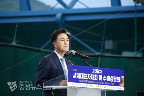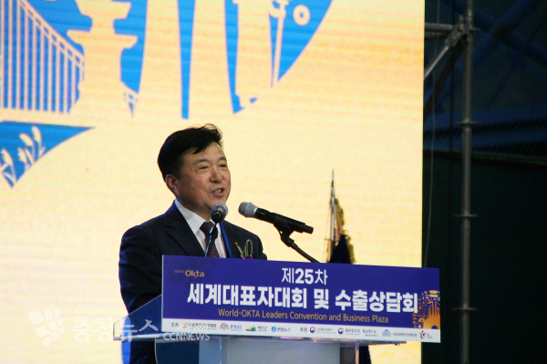 김태흠 충남지사가 “월드옥타가 우리 기업들을 더 넓은 세상, 더 큰 가능성의 세계로 이끌어 줄 것”을 당부했다/사진 권상재 기자