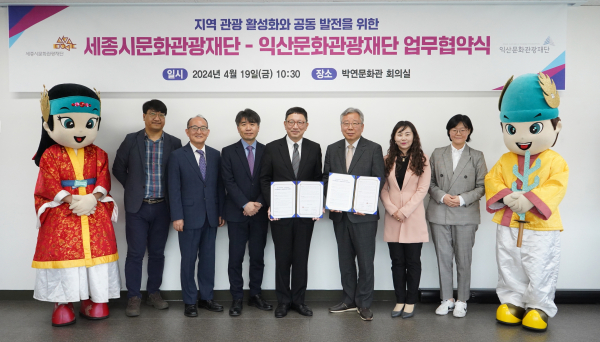 [충청뉴스 최형순 기자] 세종시문화관광재단(대표이사 박영국)은 19일 익산문화관광재단(대표이사 김세만)과 업무협약을 체결했다.