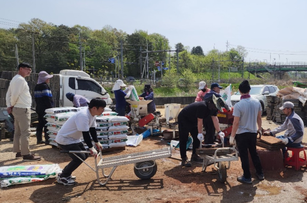 이날 일손 돕기 행사는 인건비 상승과 농촌 고령화로 일손 부족을 겪고 있는 지역 농가에 도움을 주고자 마련됐다.