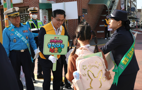 이날 캠페인에는 박희조 동구청장과 동구의회 구의원들이 참여했으며, 안전한 교통환경 만들기, 교통신호 준수하기, 스쿨존 내 안전속도 지키기 등을 집중적으로 홍보하고 아이들이 안전하게 통학할 수 있도록 운전자들의 안전 운전 협조를 구했다.