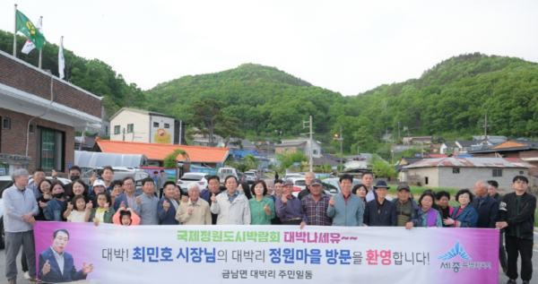 이날 오후 대박리를 방문한 최민호 시장은 김윤호 이장과 주민들로부터 ‘함께하는 마을 정원’ 조성 현황과 그간의 노력에 대한 설명을 듣고 현장을 둘러봤다.